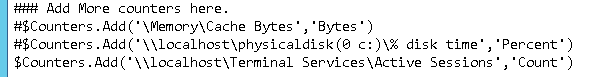 Opening up the PS1 script within notepad and jumping down to the section which starts “#### Add More Counters here.”